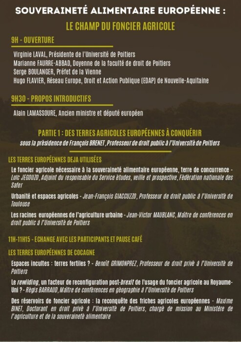 Trois questions à Jean-Victor Maublanc, maître de conférences en droit public, dans la perspective du colloque « Souveraineté alimentaire européenne : le champ du foncier agricole », organisé à l’Université de Poitiers les 14 et 15 octobre 2025.