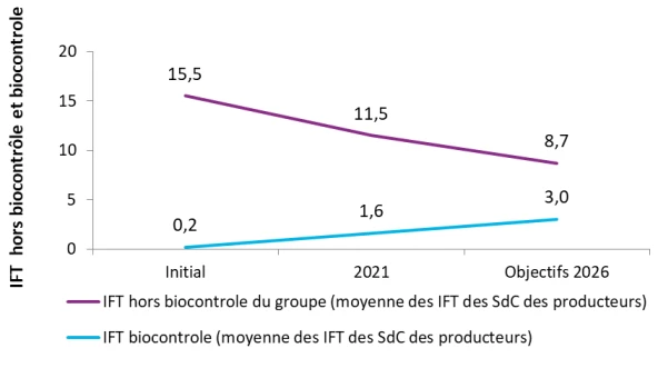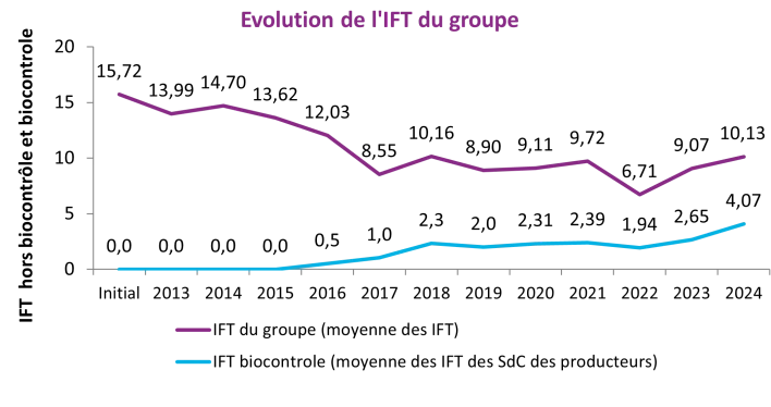 - Un objectif ECOPHYTO atteint avec une réduction de l’IFT Hors biocontrôle HH de plus de 50%